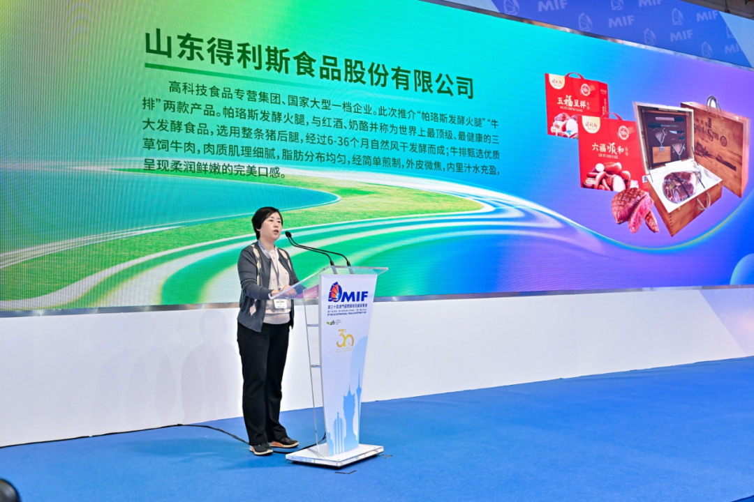股份公司海外事業(yè)部總經(jīng)理劉海瑛向與會嘉賓、客商介紹了得利斯集團(tuán)的發(fā)展歷程、產(chǎn)業(yè)布局、品牌理念及核心產(chǎn)品優(yōu)勢。得利斯始終秉持“品質(zhì)高于一切”的原則,致力于為消費(fèi)者提供從源頭到餐桌的全鏈條安全保障食品。